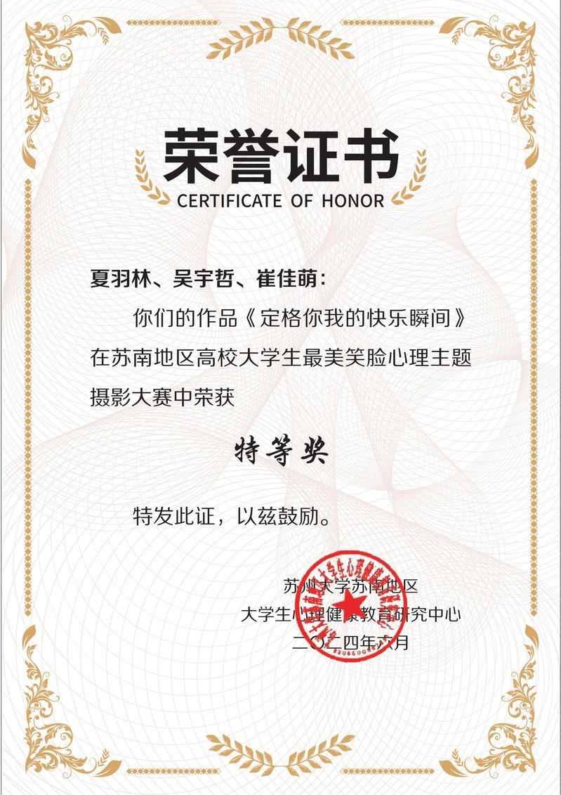 在(zài)“最美笑臉”心理主題攝(shè)影大賽(sài)中,學校數字商務學院提交的(de)作品《定格你我的快(kuài)樂瞬間》和《歡樂畢業季》均獲特等獎,智能控製(zhì)學院和旅遊與康養學院(yuàn)提交(jiāo)的作品獲(huò)一等獎,學校獲(huò)“優秀組(zǔ)織(zhī)獎”。