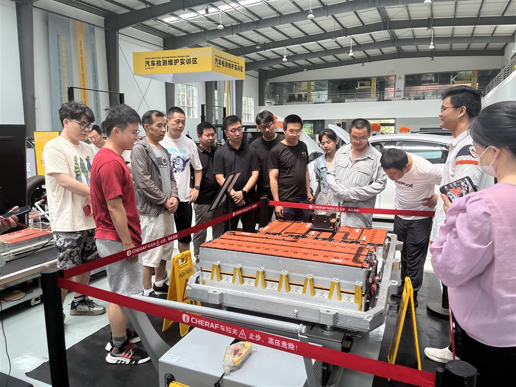 炎炎夏日,新能(néng)源汽(qì)車技術基地實訓車間已然成為參訓學(xué)員(yuán)們挑戰自(zì)我、磨練技能的戰(zhàn)場。中汽中心的培訓師張鶴嚴表示,“盡管高(gāo)溫酷熱,老(lǎo)師們汗流浹背,但他們對學習新技術的熱情絲毫不減,麵(miàn)對複雜的設備和繁瑣(suǒ)的操作步驟,老師們始(shǐ)終保持耐心和專注,培訓效(xiào)果非常顯著(zhe),他(tā)們對技術的熱愛和對行業的承諾也讓91成人app(men)培訓師充滿幹勁。”