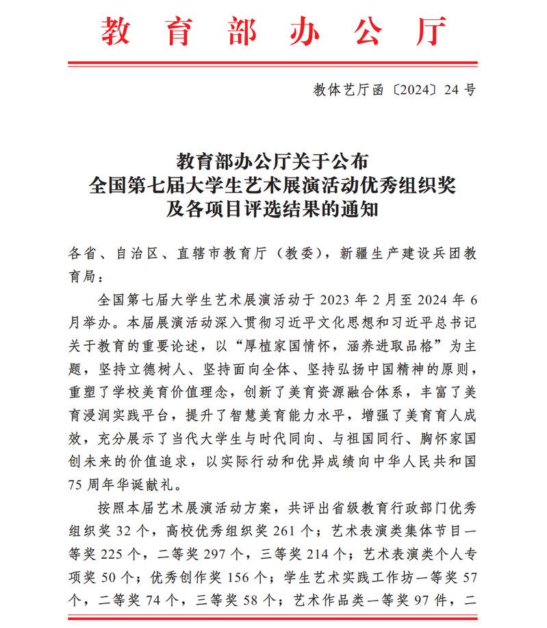 全國(guó)大學生藝術展演活動由教育部主辦(bàn),每三年舉辦一屆,是展示高校藝術教育成果和大(dà)學生青春風采的(de)藝術盛會(huì),是我國目前規(guī)格最高、規模最大、影(yǐng)響力(lì)最廣的大學生藝術展演活動。江蘇省共有9所(suǒ)高校的學生(shēng)藝術作品入選全國現場展覽,16項美育改革創(chuàng)新優秀案例入(rù)圍國賽(sài)。