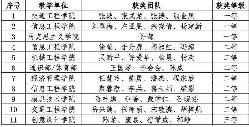 近日,2024年江蘇省職業(yè)院校教學能力(lì)比賽結束(shù)。常州機電(diàn)職業技術(shù)學院組建的11個參賽團隊(含中職思政組跨校組隊1個)全部獲獎(jiǎng),包括一等獎3項(xiàng),二等獎7項,三等獎1項,獲(huò)獎總數居全省第一。