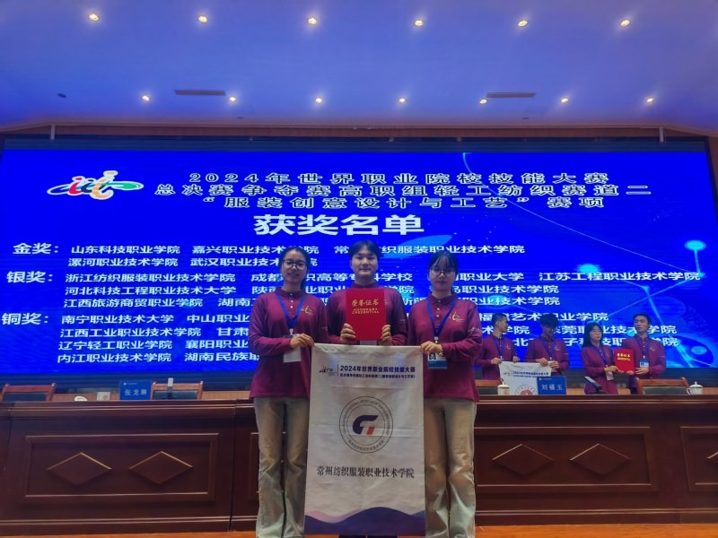 10月23-25日,2024年(nián)世界(jiè)職業院校技能大賽總決賽爭奪賽高職組輕工紡織賽道(dào)(二)服裝創意設計與工(gōng)藝賽項在山東科技職業學院開(kāi)賽。本次大賽主題為“技炫青(qīng)春,能創未(wèi)來”。來自全國25個省(直轄市)共50支隊伍參賽。常州紡織服裝職業技術學院雍定圓(服設213A班)、何若然(服工213B班)、巫一丹(服設233H班)(指導老師:穆雪梅、徐君)不畏強手、奮勇拚搏,斬獲金獎(jiǎng)!