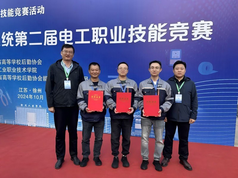 10月25日,江蘇省高校後勤(qín)係統第二屆電工職業技(jì)能競賽在徐州工業職業技(jì)術學院舉行。本次競賽(sài)由江蘇省高等學校後勤協會主辦,徐州工業職業技術學院(yuàn)、後勤協會能源(yuán)管理專業委員會協辦,常州紡織服裝職業技術學院後勤保障部姚建中、浦麗(lì)傑、姚駿(jun4)佳代表學校參加(jiā)比(bǐ)賽(sài)。經過激烈角逐,浦(pǔ)麗傑以實(shí)操成績第一名、競賽總成績90.3分榮獲競賽(sài)第四名,被江蘇省高等學校後勤協會授予“江(jiāng)蘇高校後勤行業技術能手”稱號。姚駿佳、姚建中也取得了優異的成績,被江蘇省高等學校能源管理專業委員會授予“江(jiāng)蘇高校後勤電工技能之星(xīng)”稱號。