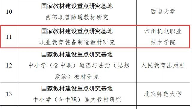 常州機電(diàn)職業技(jì)術學獲批國家教材建(jiàn)設重點研究基地