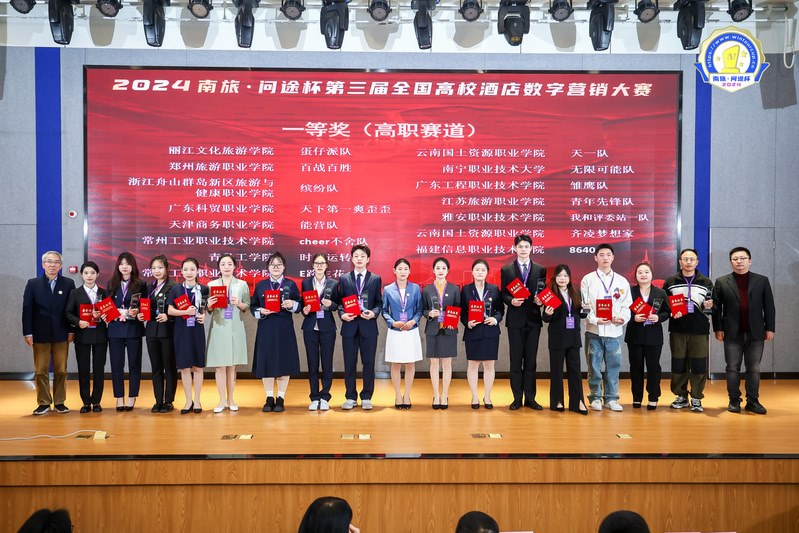 12月7日,由中國旅遊飯店業(yè)協會人力資(zī)源分會、江蘇旅遊職業教育集團、南京旅遊(yóu)職業學院和廣州市問途信息技術有限公司(sī)共同主辦的2024年“南旅(lǚ)?問途杯”第三(sān)屆全國高校(xiào)酒店數字營銷大賽落幕。由常州工業職業技術學院旅遊與康養學院蔡明奇、王晴、楊梟及王璿4位同學組成(chéng)的“Cheer不舍”隊和陸琦、耿靜(jìng)茹、顧(gù)雨欣及邵翔4位同學組(zǔ)成的“E路生花(huā)”隊(duì)均獲高職組一等獎,王子璐(lù)、張貞穎、魏俊璿和王思羽4位同學組成(chéng)的“奇思妙妙”隊(duì)獲(huò)得高職組三等獎。許豔和王雨昕兩位(wèi)教師(shī)獲評(píng)“優秀指導(dǎo)教師”,學校獲“最佳組織(zhī)獎”。