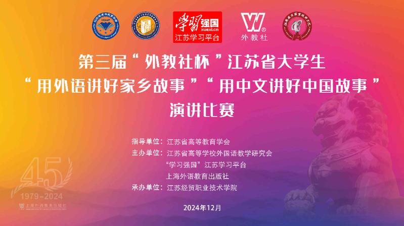 “外教社杯”江蘇省大學生“用外(wài)語講好家鄉(xiāng)故事”演講比賽被江蘇(sū)省高等教育學會認定為(wéi)全省普通高校本(běn)專科生學科競賽省級賽(sài)事培育(yù)項目(mù),大賽得到了江蘇大學生的積極參與。