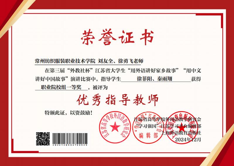 常州紡織服裝職業技術學院的人文與健康學院商務英語專業徐菲陽(yáng)團隊憑借深厚的英語功底、精妙的視頻創意(yì)和流暢(chàng)的語言表達(dá),蟬聯大賽一等獎。