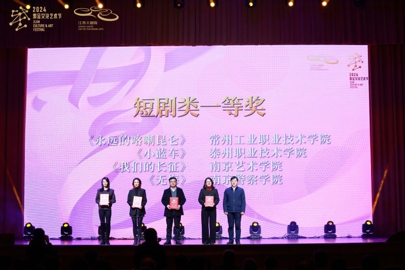 12月20日,2024江蘇省大學(xué)生戲劇展演頒獎儀式在江蘇(sū)大劇院舉行。常州工業職業技術學院原創短劇《永遠(yuǎn)的喀(kā)喇昆侖》獲短劇類一等獎。江蘇省委(wěi)宣傳部副部長徐寧等(děng)領導出席活動並為(wéi)獲獎單位頒獎。學校副校長檀祝平出席活動,團委相(xiàng)關人員陪同參加。