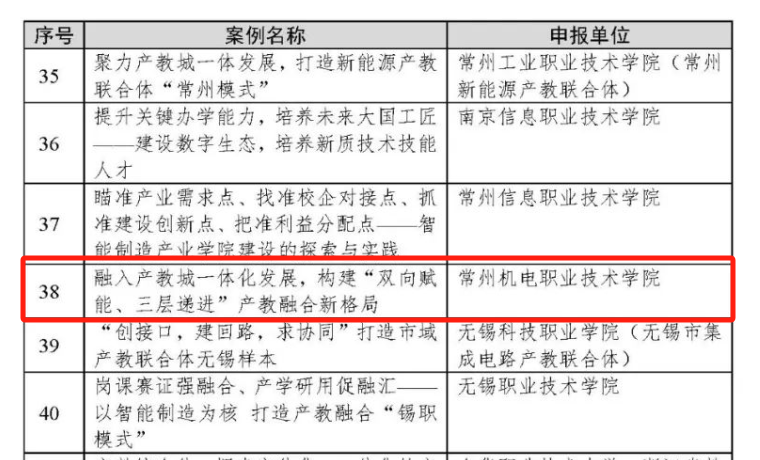 近日,常州機電職業技術(shù)學院報送的《融入(rù)產教城一體化發展,構(gòu)建“雙向賦能、三層遞進(jìn)”產教融合新格(gé)局》案例入選教育部2024年產教融(róng)合、校企合作典型案例。