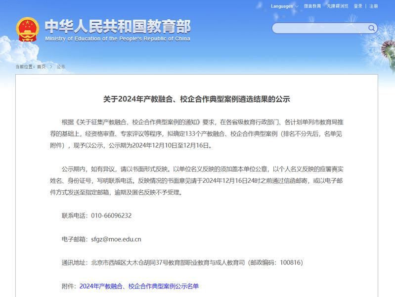 本次遴選在各省級教育行政部門、各計劃單列市教育局推薦的基礎上,經資格審查、專(zhuān)家(jiā)評議等程序,選定133個產教融合、校企合作典型案例,江蘇省入選6個案例。