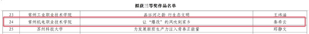 12月31日,由江蘇省高校網絡思想政治工作中心主辦的(de)2024年度江蘇省高校網絡思政“金微課”征集評選活動結(jié)果公布,常州(zhōu)機電職業技術學院信息工程學院輔(fǔ)導員秦希雲的微課作(zuò)品《讓“爆改”的風吹到家鄉》獲三等獎。