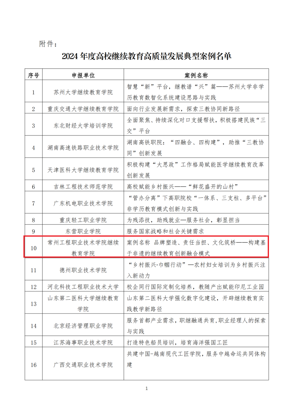 近日,2024高校繼續教育(yù)高質量發展典型案例評(píng)選結果揭曉,常州工程職業技術學院申報的“品牌塑造、責任擔當、文化築橋——構(gòu)建基於非遺(yí)的繼續教育創新融合模式”案(àn)例成功入選,彰顯了我校在繼續教(jiāo)育領域積極探索、創新發展的成效。