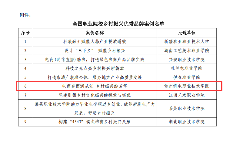 近日,常(cháng)州機電職業技術學院經(jīng)濟管理學院報送的《電商春雨潤從(cóng)江鄉村振興綻(zhàn)芳華》典(diǎn)型案例,被全(quán)國職業院校鞏固扶貧成果(guǒ)服務鄉村(cūn)振興協作聯盟評定為“全國職業(yè)院(yuàn)校鄉村振興優秀品牌案例”。本次評(píng)選經過(guò)資格審查、專家(jiā)評審、綜合評議等評(píng)選程序,從全國78個案例中(zhōng)選出18個案例(lì),江蘇省僅我校案例入選。