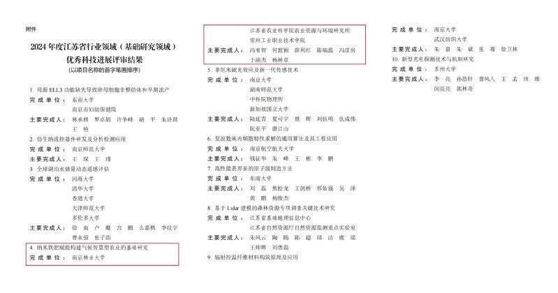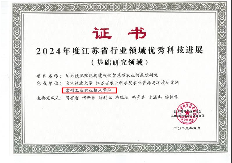 近日,江蘇(sū)省科協公布了“2024年度江蘇省行業領域十大科技進展(zhǎn)”成果名單。由(yóu)常州工業職業技(jì)術學(xué)院材料工程(chéng)學院於湧傑博士(2025年江蘇省“青藍工程”中青年學術(shù)帶頭人)聯合南京林業大學、江蘇省農科院申(shēn)報(bào)的“納米鐵肥賦能構建氣候智慧(huì)型農業的基礎研究”入選“2024年度江蘇省行業領域(基礎研究領域)十大科技進展”,並榮獲優秀科技進展。該(gāi)成果是繼團隊獲批國家自然科學基金麵上(shàng)項目及在《Nature Sustainability》發表開創性論(lùn)文後的又一重大(dà)突(tū)破。