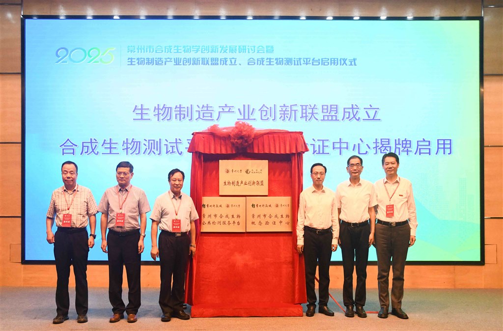 在與會嘉賓的共同見證下,現場正式成(chéng)立了“生物製造產業創新聯盟”,並揭牌啟用“常州市(shì)合成生物公共檢測服務平台”和“常州市合成生物(wù)概念驗(yàn)證中心”,標誌著常州在合(hé)成生物學(xué)基礎(chǔ)設施與產(chǎn)業(yè)協同方麵取得關鍵進展。常州市合(hé)成生物概念(niàn)驗證(zhèng)中心與省內四家(jiā)生(shēng)物科技(jì)企業完成首批入駐(zhù)項目簽約,彰顯(xiǎn)出產學研(yán)深度融合的(de)積極成效。