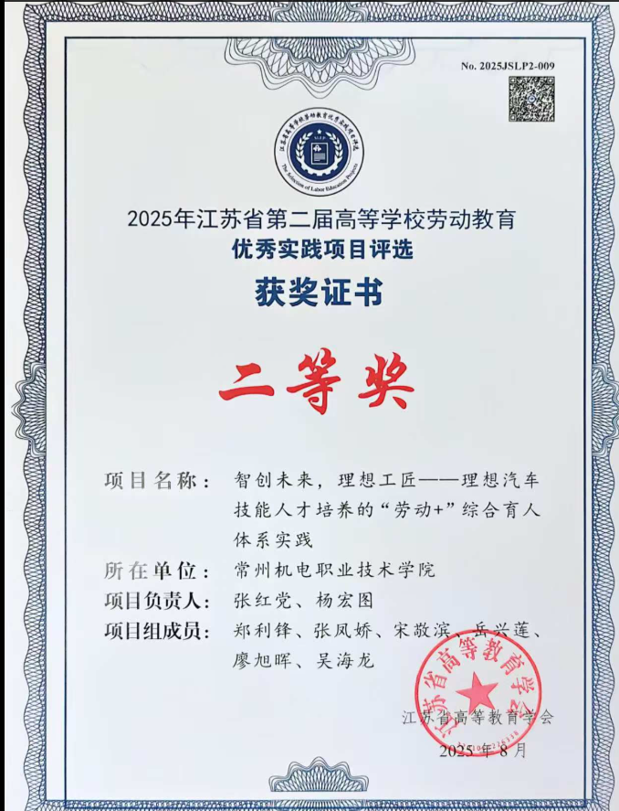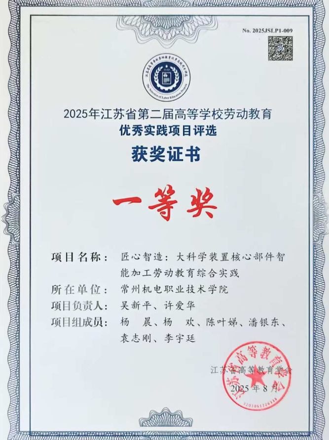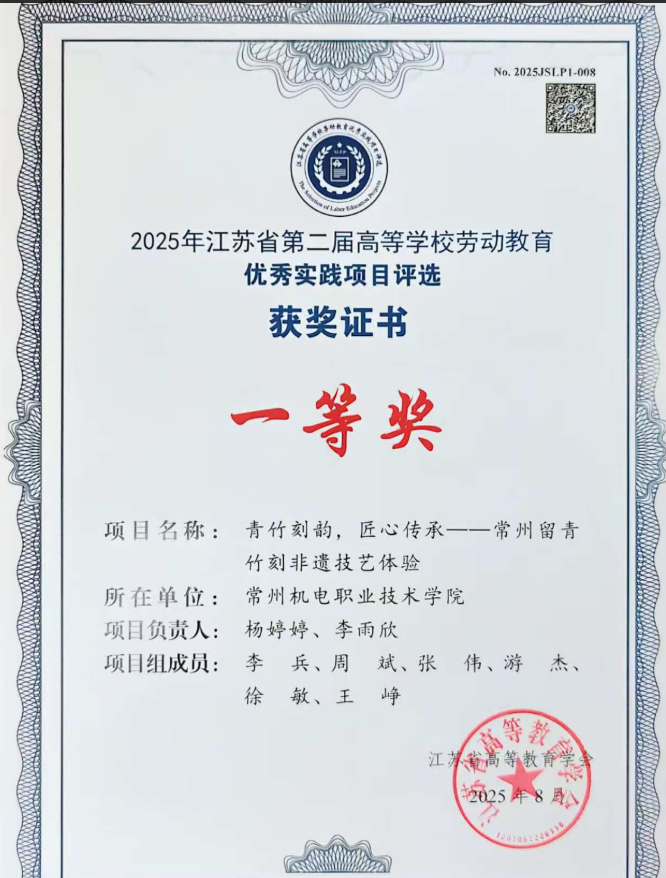 近日(rì),在2025年江(jiāng)蘇省第(dì)二屆高等學校勞動教育優秀實踐項目評選(xuǎn)中,常州機電職業技術(shù)學院報送的《青竹刻韻,匠心傳承(chéng)——常州留青竹刻非遺技藝體驗》《匠心(xīn)智造:大科學(xué)裝置核心部件智能加工勞動教(jiāo)育綜合實踐》榮獲一等獎,《智創未來,理想工匠——理想汽車技能人才培養的“勞動+”綜合(hé)育人體(tǐ)係(xì)實踐》榮獲二等獎,學校獲優秀組織獎。