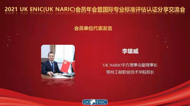 常州工(gōng)程學院:李雄威校長(zhǎng)出席UK NARIC會員年(nián)會並作主旨發言