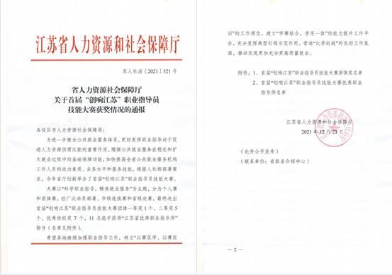 大賽由江蘇省人(rén)力資源(yuán)與社會保障廳主辦(bàn),以“科學職業指導,精準就業服務”為主題,分為個人賽和團體賽,吸引了全省近千名職業指(zhǐ)導員同台競技,經廣泛動員(yuán)部(bù)署、市級選拔賽和省級決賽,14支代表隊中最終(zhōng)決(jué)出團(tuán)體一等獎1個、二等獎(jiǎng)5個、優秀組(zǔ)織獎7個,11名選手獲得“江(jiāng)蘇省優秀職業指導師”稱號。