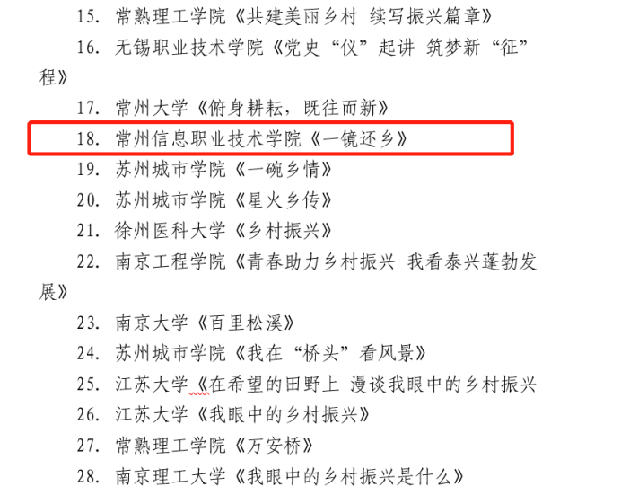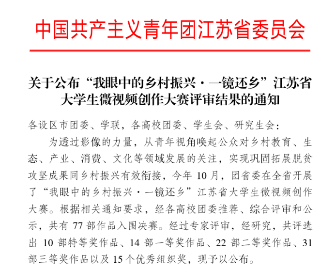 此外,在“我眼中的鄉村振興·一(yī)鏡(jìng)還鄉”江蘇省(shěng)大學生微視頻創作大賽中,我校選送的《一鏡還鄉》獲三等獎。在江蘇省“我心向黨”中(zhōng)華經典誦讀大賽中,我校作品《一封家書》《光的讚歌》獲(huò)三等獎(jiǎng)。在“踐行初心 擔當使命”慶祝中國共產(chǎn)黨成立100周年江蘇省大學生中(zhōng)華(huá)經典(diǎn)誦讀決賽中,我校作品(pǐn)《烈火中永生》獲三等獎。另有(yǒu)3篇微小說入圍江蘇省“微小說·新時代(dài)”原創微小說大賽決賽,為入圍數(shù)量(liàng)最多的高職院校。(文、攝/許微暘 審/陳波 張煜 任文珺(jun4))