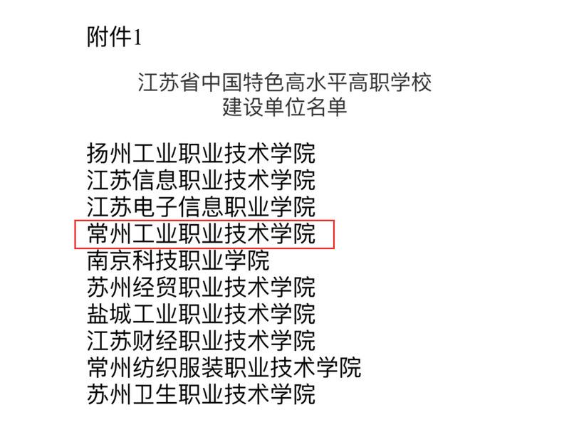 常州工業學院:我校成功入選江蘇省中(zhōng)國特色高水平高職學校