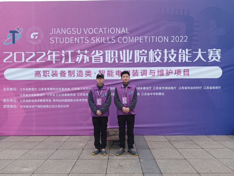 1月10日,2022年江(jiāng)蘇省職業院校(xiào)技能大賽——高職裝備製造類智能電(diàn)梯(tī)裝調與維護項目在常州紡織服裝職業技術學院落下帷幕,我校智能控製學院(yuàn)盧羽、謝修鑫兩位同學通(tōng)力合作、密切配合,共同摘得省(shěng)賽一等獎的桂冠。
