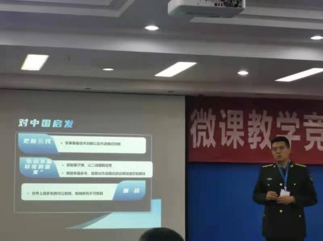 此次競賽分為視頻初賽和現場決(jué)賽(sài)兩個階段。2021年11月,全省各普通高校選拔軍(jun1)事課教師(shī)以(yǐ)報送授課光盤的(de)形式進(jìn)行預賽,學校接到競賽通知後積極籌備,人武部、軍事教研室積(jī)極組織、認真備課,經多次試(shì)講(jiǎng)篩選,最終選派三位老師參賽。12月上旬,經過專家初評,該校趙柯焱老(lǎo)師成功(gōng)入圍決賽。決賽場上趙老師憑借紮實的教學基本功和生動而富(fù)有激(jī)情的(de)講(jiǎng)解,得到評委的一致(zhì)認(rèn)可,獲得了此次競賽(sài)的三等獎。