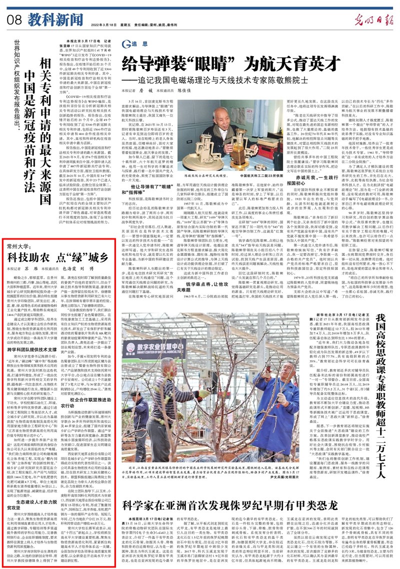 光明日報報(bào)道常州大學科技助農 點“綠(lǜ)”城鄉,中共江蘇(sū)省委組織部官網(wǎng)同步報道