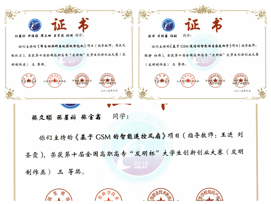 日前,第(dì)十屆全國高職高專“發(fā)明杯”大學生創(chuàng)新創業大賽決(jué)賽結果揭曉(xiǎo),信息學院選送的七個作品均進(jìn)入決賽並斬獲獎項,其(qí)中兩個一等獎、兩個二等獎(jiǎng),三個三等獎。費強(qiáng)、張瑋老師獲得大賽(sài)優秀指導教師榮譽稱號,學院被評為優秀組織獎。