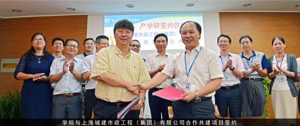 9月22日上午,學院與上海城建市政工程(集(jí)團)有限公司的校企合作簽字儀式在行政服務(wù)中心325會議(yì)室舉行。城建集團黨委書記、董事長周鬆、副(fù)總經(jīng)理胡勁(jìn)鬆(sōng)、學院吳訪升院(yuàn)長、陳炳和副院長及相關職能部門負責人、專家等出席簽約儀式。常州市科教(jiāo)城管委會黨工(gōng)委副書記、副主任(rèn)陸金林、同濟大學(xué)地(dì)下(xià)建築與工程係(xì)廖(liào)少明教授應邀出席儀式(shì)。