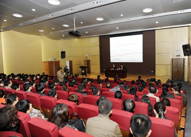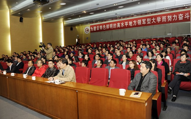 11月10日下午,南(nán)京大學黨委副(fù)書記、博士生導師朱慶葆教授做客常州大學高層論壇,在文彰樓報告廳為我校師生作了題為《地方高水平大學的使命》主(zhǔ)題報告。常州(zhōu)大學黨委中心組全體成員、全體中層幹部、科級幹部、教授代表、學生代表兩百餘人聆聽了報告。常州大學校長(zhǎng)浦玉忠出席報告會,報告會由副校長芮國強(qiáng)主持。