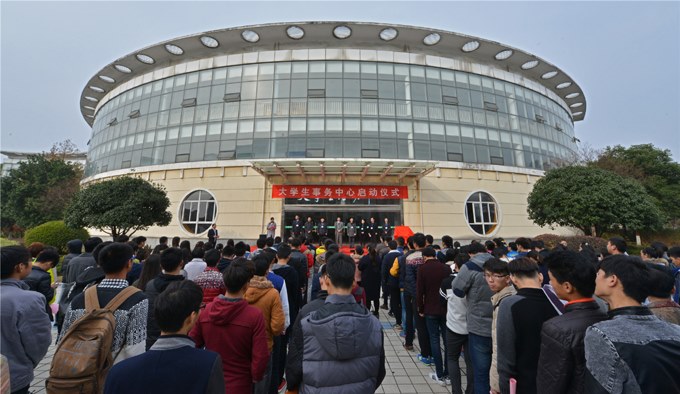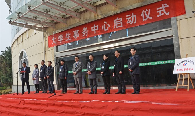 大學生事務中心啟動(dòng)儀式在活動中心隆重舉行。學院黨委歐(ōu)漢生(shēng)副書記、學工處張雪華處長、教務處李東升(shēng)處長、後勤服務中心李弘書記、財務處顧亞莉處長、院團委蔣文嶸書(shū)記、保衛處趙雷副處長、繼續教(jiāo)育(yù)學院李旭海副院長、招生就業處(chù)徐擁(yōng)軍副處長、各二級學院副(fù)書記、事(shì)務(wù)中心全體工作人(rén)員和學(xué)生代表近百人參加了儀式。儀式(shì)由學工處副處長竇(dòu)蘇明主持。