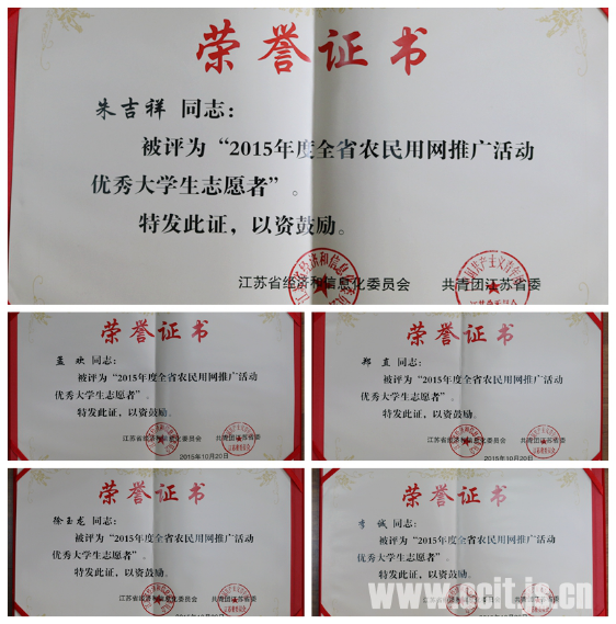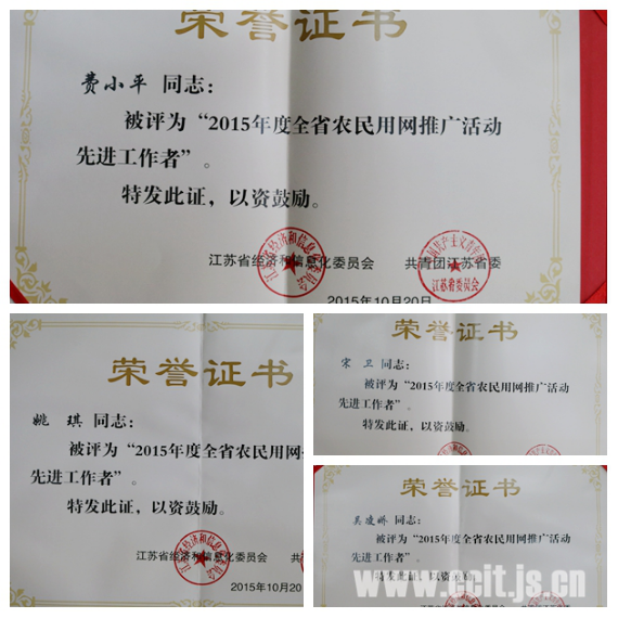 近日,省經信委和團省委聯合對(duì)在2015年全省農民用網推廣活動表現突(tū)出的個人進(jìn)行了表彰。我院費小平、楊(yáng)紅燕、周建美、宋衛、方(fāng)基、姚琪、沈君、吳淩嬌(jiāo)和陳潞被評為先進(jìn)工作(zuò)者,徐玉龍、夏雲、陸梓寧、沈敬恒、朱吉祥、李誠、孟歡、鄭直、楊雷(léi)和楊立益(yì)被評為優(yōu)秀大學生誌願者。