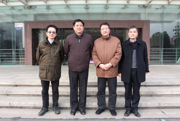 黨委書記(jì)楊興華(huá)與前(qián)後三任院(yuàn)長合影(左起:周(zhōu)大(dà)農、楊興華、王榮成、楊勁鬆(sōng))