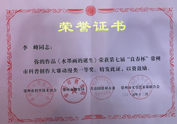 本次科普創作大賽得到了全市科普創作愛好者及在校大、中、小學生的積極響應,經大賽評審委員會初評、複評(píng)、終評,共有41件作品分獲科普文(wén)學(xué)類和科普動漫(màn)類(lèi)一(yī)、二、三等獎,另有32件作品獲優秀獎(jiǎng)。我院李峰老師的《水墨畫的誕生》獲科普動漫(màn)類一等獎;魏驄、王永濤、沈濤同學的《灰與白》,沈克州同(tóng)學的《空氣》獲科普動(dòng)漫(màn)類二等獎;劉(liú)弘磊同學的《空氣》,薛熙玲同學的《綠色空間》獲科普動漫類三等獎,囊括了前3名。肖晗(hán)予老師的《兒子的(de)禮物》獲小說、報告文學類二等獎;王碩同學(xué)的《小蚊子曆險記》獲童話、科普小品類二等獎;張婉秋同學的《發(fā)現科(kē)學美》獲散文、詩歌類三等獎。