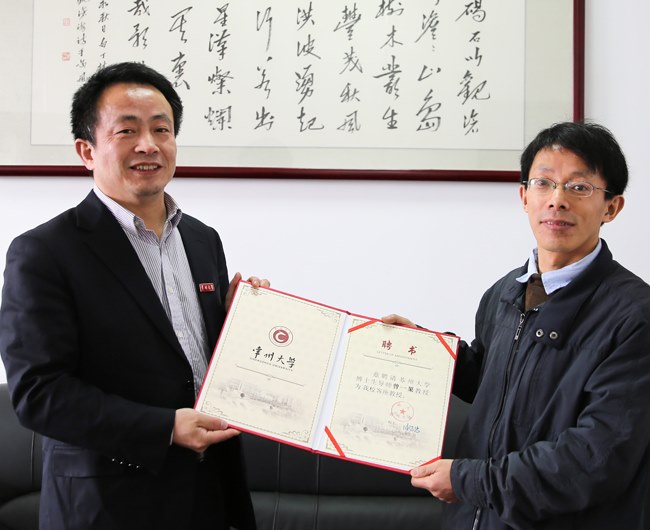 芮國強副校長為曾一果(guǒ)教授頒發客座教授聘書