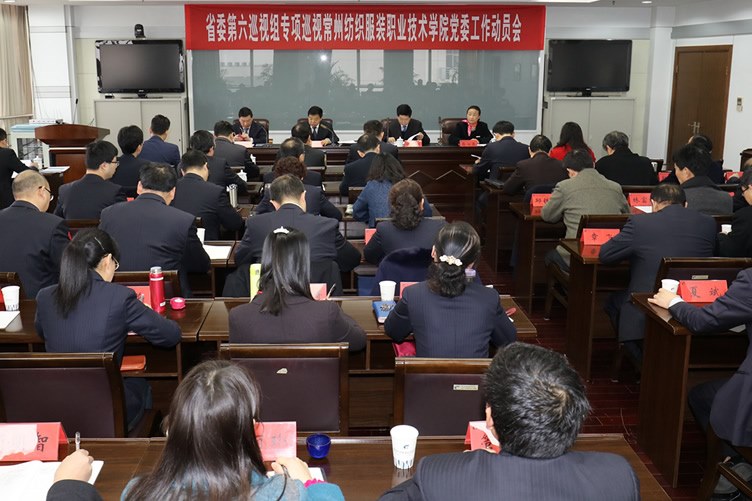 按照省委統一部署,省委第六巡視組(zǔ)對中共常州紡織服裝職業技術黨委開展(zhǎn)為期一個月的專項巡視。3月18日上午,專(zhuān)項巡(xún)視工作動員會在學校7401會議(yì)室召開。會前,省委第六巡視組組長邢元新、副組長兼專項巡視三組組(zǔ)長葉亞明向學校黨委書記陳光曙傳達了(le)習近平總書記關於巡視工作的重要(yào)指示和省委(wěi)羅誌軍書記的重(chóng)要講話。會上,邢元新就即將開展的巡視工作(zuò)作了(le)動員講話,陳光曙主持(chí)會議並作(zuò)表態發言和工作(zuò)匯報。