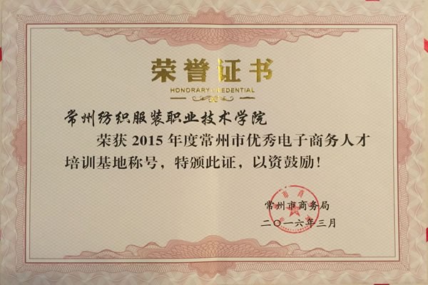3月18日下午,常(cháng)州市商務局在新北(běi)區創意產業基地舉行“常州市電子商務優秀(xiù)單位及人物”表彰,我院被授予“2015年(nián)度常州市優秀電子商務人才培訓基地”的榮譽稱號。