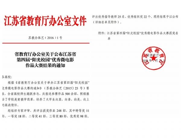 本次大賽由江蘇省教育(yù)廳(tīng)主辦,經組織專家(jiā)評審,共評出獲獎作品248部,其中特等獎11部、一等獎18部、二等獎41部、三等獎80部、優秀獎98部(bù)。評出(chū)優秀指導(dǎo)教師25名、優秀組織獎22個。