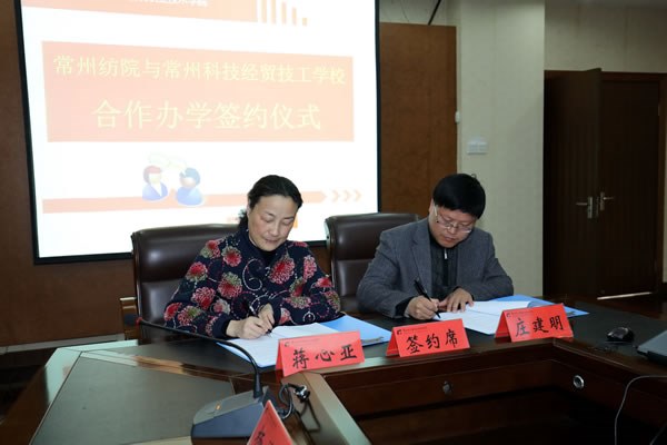 商談中,常州科技經貿技工學校莊(zhuāng)建明校長(zhǎng)表示,希望通過(guò)與我校合作(zuò)辦學,提升自身實力,實現合(hé)作雙(shuāng)贏。賀仰東(dōng)簡要介紹了我院的基(jī)本情況,蔣心亞對兩校合(hé)作項目的(de)背景、合作模式與未來發展方向做了具體闡述。雙方最(zuì)後舉(jǔ)行了合作辦學簽(qiān)約儀式。