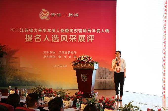 5月5日,孟媛同學(xué)在南京大(dà)學仙林校區亮相“2015江蘇省大學生年度人(rén)物提名人選”風采展。我院學工處(chù)張雪華處長、陳小霞老師,裝飾學院學工辦李悅、吳玉劍老師以及部分同學等到場觀摩學習。