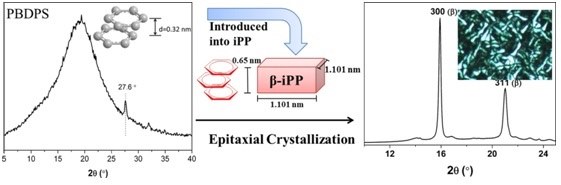 楊榮博士(shì)是我校材料學院的青年(nián)教師,目前在李錦春教授(shòu)團隊從事阻燃高分子以及液晶高分子的研究工作。論文通(tōng)過分子設計合成了(le)一種液晶聚酯(zhǐ),其側(cè)基苯環錯位(wèi)平行堆積形(xíng)成強烈的(de)物理π-π相互作用,這些錯位平行堆積(jī)的苯環結構與聚丙烯β晶型的晶胞參數c軸匹(pǐ)配。將其與(yǔ)聚丙烯共混,可以在靜(jìng)態結晶條件下誘導聚丙(bǐng)烯附(fù)生結(jié)晶完全形成β晶型。這是目前文(wén)獻報道中β晶型誘導效率最高的大分子成核劑,這項工作的(de)開展將為新型高效聚丙烯β成核劑的開發提供一種新的思路。由於(yú)“同質異晶”現象廣(guǎng)泛存在於結晶聚合物中,不同晶型的同種聚(jù)合物,其物(wù)理機(jī)械性能可能存在明顯差(chà)異。對於等(děng)規聚丙烯來說,通過(guò)不同的加工方式可以形成α、β、γ、近晶四種晶(jīng)型(xíng),其中熱力學上不穩定、動力學上不易形成的β晶型聚丙烯具(jù)有更好衝擊強(qiáng)度和耐熱性,是目前研究的熱點。(通訊員/周書