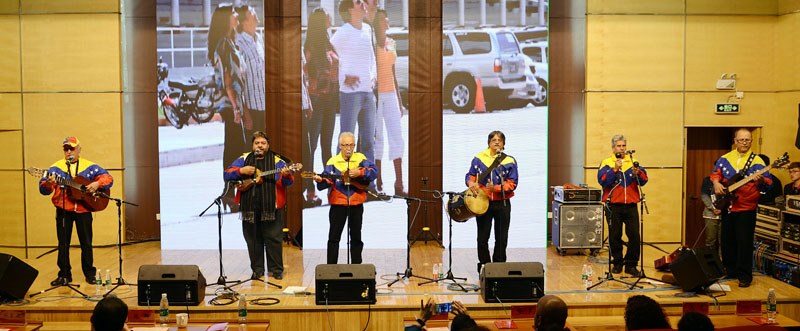 為慶祝常州大學與委(wěi)內瑞拉玻(bō)利瓦爾大學共建孔子學院正式開課,進一步(bù)推(tuī)動中委兩國在文化和(hé)教育領域的深入交流(liú),委內瑞拉駐華大(dà)使館專門邀請委內瑞拉(lā)著(zhe)名樂隊——黑豆組合於3月13日在常州大學舉辦“委內瑞拉為孔子獻歌”專題音樂會。委內(nèi)瑞拉駐華大使館參讚瑪麗亞?培尼(ní)亞、哈(hā)羅?拉坦?盧塞斯等嘉賓出席音樂會,常州大學校長陳群,黨委副書記、副校長陳奎慶,副校長陸錦衝、蘇旭(xù)平,相關職能部門負責人及全(quán)校近(jìn)350位師生一同觀看了音樂會。我校精選了具有中國傳統文化特色的音樂節目共台演出。