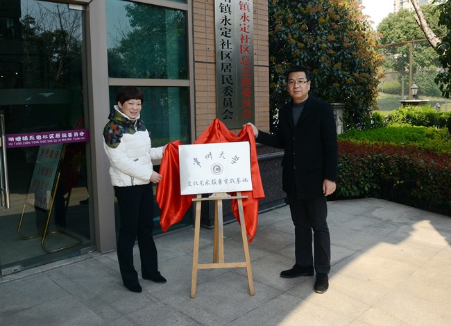 會前(qián),陳(chén)奎慶與莊(zhuāng)亞娟共同為“常州大學文化藝術服務實踐基地”揭牌。