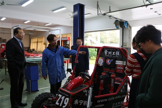 交流結束後,洪霄副院長陪同(tóng)來賓一行參觀了我院(yuàn)巴哈賽車實訓中心。