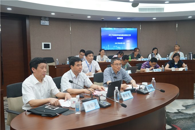 6月14日下午,由南通大學黨委副書記、副校長江應中為(wéi)組長,江蘇農牧科技職業學院招生就業處(chù)處長曹斌、江(jiāng)蘇師範(fàn)大學學生處副處長周顯(xiǎn)洋(yáng)、南通(tōng)大學就創業中心主任劉霞為成員的省教育廳高校畢業生就業創業工作督查組蒞臨我院,全麵檢查我(wǒ)院(yuàn)2014-2017年畢業生就業創業工作(zuò)開展情況。院(yuàn)領導歐(ōu)漢生(shēng)、陳炳和、施福新,招就處、教(jiāo)務處、財務處、學工處、團委、社科部等職能(néng)部門負責人(rén),各二級學院黨總支(zhī)書記、副書記,以及專職就業工作輔(fǔ)導員、《就(jiù)業(yè)與創業指導(dǎo)》任課教師、學生代表出席了會議。會議由(yóu)紀委施福新書記主持(chí)。