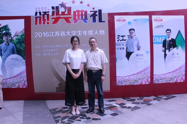 6月13日下午,由中共江蘇省委教育工(gōng)委、江(jiāng)蘇省教(jiāo)育廳主辦的“2016江蘇省大學生年度人(rén)物暨高校輔導員年度人(rén)物”頒獎典禮在南京理工大學舉(jǔ)行,學院副院長賀(hè)仰東帶(dài)隊參(cān)加了頒獎典禮。我(wǒ)校學生邵嵐獲“2016江蘇省大學生年度人物”入圍(wéi)獎。