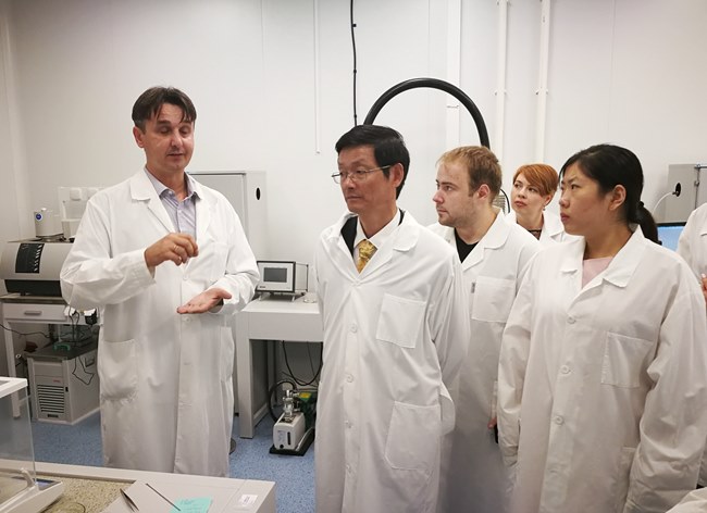 在俄羅斯烏法國立航空技術大學(xué)訪問期間,校長Nikolay KRIONI、副(fù)校長Igor Alexandrov會見了我校代表(biǎo)團,對我校代表團訪問(wèn)表示熱烈歡迎,期待在共建聯合實驗室、推進學生(shēng)交流、教師互訪等方麵(miàn)進行深入合作。烏法國立航空技術大(dà)學材料學(xué)院(yuàn)院長Kamil RAMAZANOV及(jí)相(xiàng)關負責人詳細介(jiè)紹了該(gāi)院的基本情況,研究(jiū)方向及成果,帶領參觀了實驗(yàn)室。在北高加索國立(lì)聯邦大學,校長Левeтская Алина Афакоевна、副校長(zhǎng)Шипулин Валентин Иванович會見了我校代表團。雙方就教(jiāo)師訪學、合作科研、學生交流等事宜達成共識。會見前,代(dài)表團一行參觀了基礎物理(lǐ)、基礎化學實驗室。