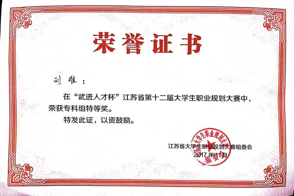 11月(yuè)28日,由江蘇省教育廳主(zhǔ)辦、省高校招生就業(yè)指導服(fú)務中心承辦的江蘇省(shěng)第十二屆大學生職業規劃大賽在常州工程職業技(jì)術(shù)學(xué)院落下帷幕。此次大賽共有全省114所學校推(tuī)薦的318名選手參(cān)加,24名選手入圍專科組決賽。我校經貿學院劉維同學榮獲專科組特(tè)等獎,被評為職(zhí)業(yè)規劃之星(xīng)