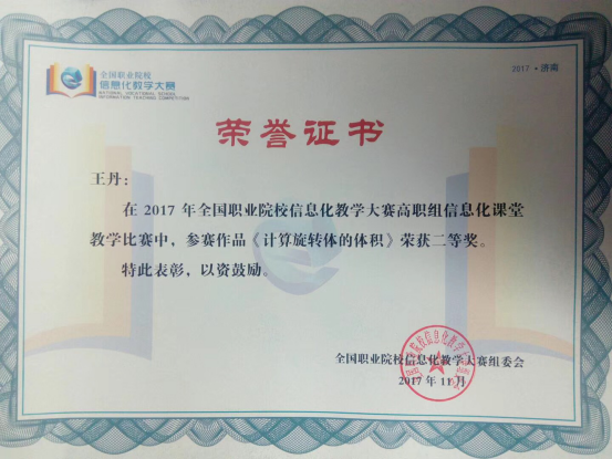 我院3個教師團隊在斬獲省賽佳績(jì)的基礎上,再接再厲,打磨作品,備戰本次大賽。備賽過程中,參賽團隊得到了學校各部門(mén)的大力支持。經過激烈角逐,經貿管理學院卜凡、彭蘇(sū)秦、宗瑋老師的《物料清單構建》作品榮獲高(gāo)等職業教育組信息化課堂教學二等(děng)獎;基礎部王丹老師的《計算(suàn)旋轉體的體積》作品榮獲高等職業教育組信息化課堂教學二等獎。在本次大(dà)賽閉幕(mù)式中,卜(bo)凡老師進行了獲(huò)獎作品展示,教育部職業教育與(yǔ)成人教育司王繼平司長(zhǎng)在(zài)隨(suí)後的閉幕(mù)式講話中對該作品給予了高度的肯定與評價。
