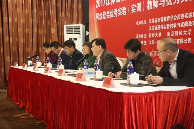 11月24日至26日,2017江蘇高校經(jīng)管類虛擬仿真實驗教學項目(mù)建(jiàn)設研討會(huì)暨經管類優秀實驗(實訓)教師與優秀實驗(實訓)教學案例評選表彰在常州召開。會議由江蘇省高等教育學會高校實驗(yàn)室研究(jiū)委員會(huì)、江蘇(sū)省高校實驗教學與實踐教育中心聯席會主辦(bàn),常州大學、南京財經大學承辦,江蘇一鼎堂軟件科技有限公司協辦。來自(zì)南京大學、江南大(dà)學、江蘇大學、南京審計大學等高校(xiào)80多名代(dài)表,圍繞經管類虛(xū)擬仿真實驗教學項目建(jiàn)設進行了深入探(tàn)討。常州大學副校長王(wáng)衛星,江蘇省高校實驗室研究會副理事長、秘書長胡凱,江蘇省(shěng)教育廳高教處主任魏永軍,江蘇省(shěng)高校實驗教學(xué)與實踐教育中心聯席(xí)會財經學科(kē)組組長、南京財(cái)經大學教(jiāo)務處處長陸(lù)華良教(jiāo)授,常州大學教務處副處長莫琦,江蘇一鼎堂軟件科技(jì)公司總經理鄭烜斌等出席會議。開幕(mù)式由常州大學商學院黨委書記江濤濤主持。