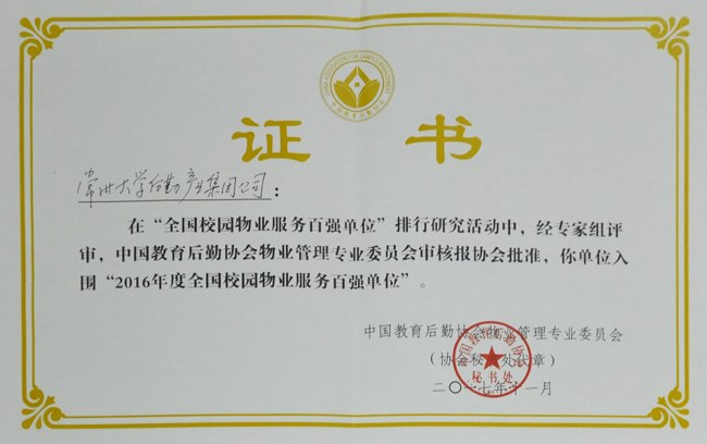 12月2日,中國教育後勤(qín)協會物業(yè)管理專業委員會(2017)年會暨第四屆(jiè)中國校園(yuán)物業管理發展論壇在廈門市舉行,經第三方專家組權威評審,中國教(jiāo)育後勤協會物業管理專業委員會審批,共選出高校後勤實體30強、社會企業50強,我校後勤產業集團公司榮獲“中國校園物業服務(wù)實體百強”第18名,常州學子物業服務公司榮獲“中國校園物業服務企(qǐ)業百強”第48名。